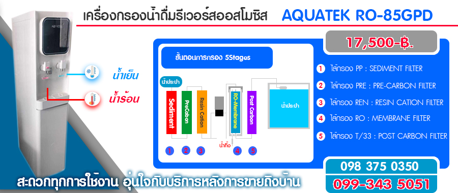 เครื่องกรองน้ำดื่มAQUATER : RO (Reverese Osmosis) แบบตู้กดน้ำร้อน(HOT)-น้ำเย็น(COLD)